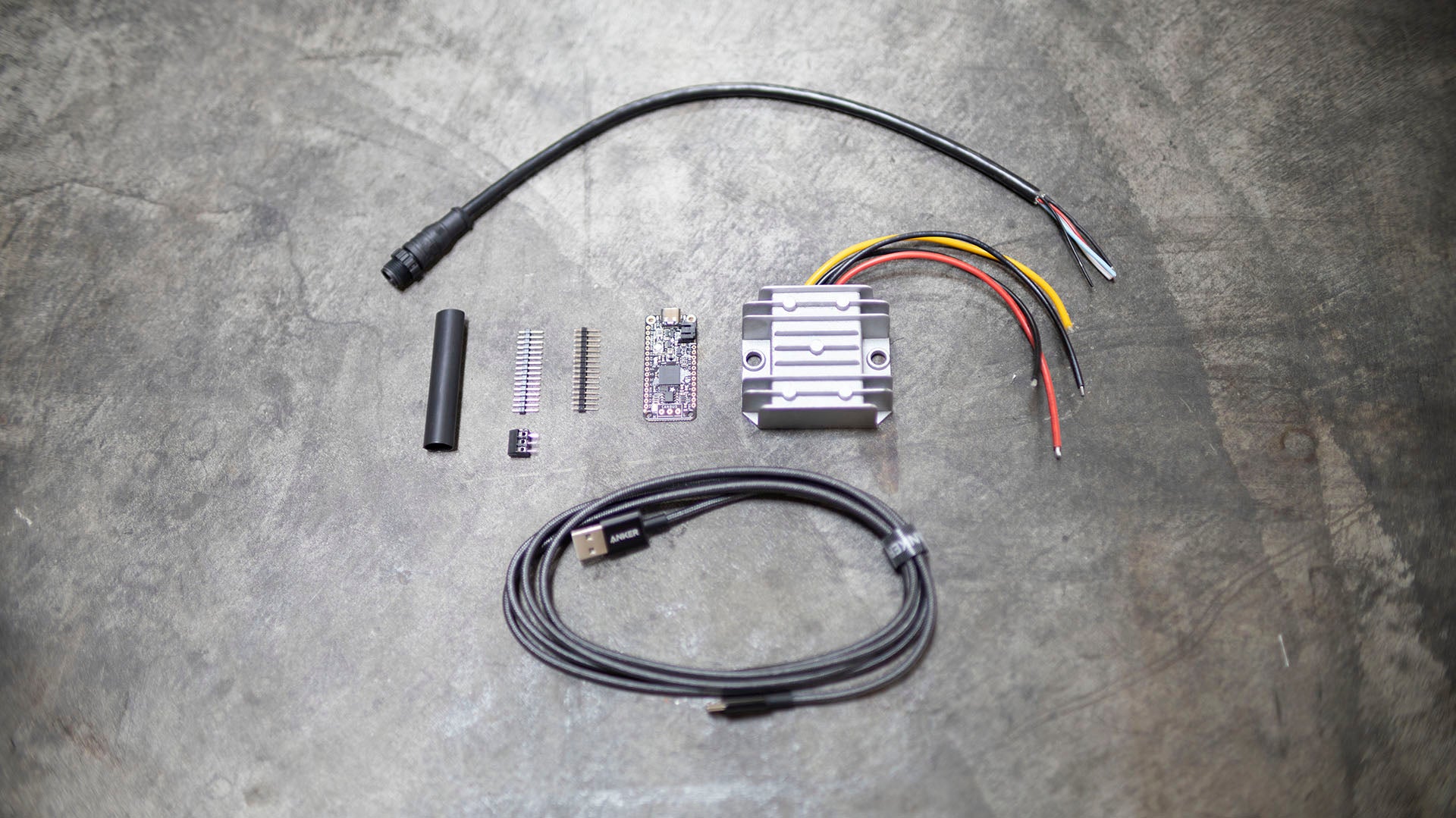 - 6' usb-c to usb-c cable for programming the microcontroller from your laptop or workstation